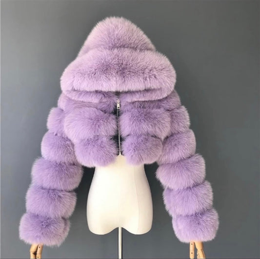 Real fur crop top coat with real leather inside.