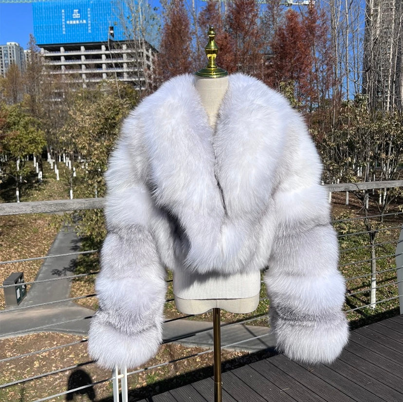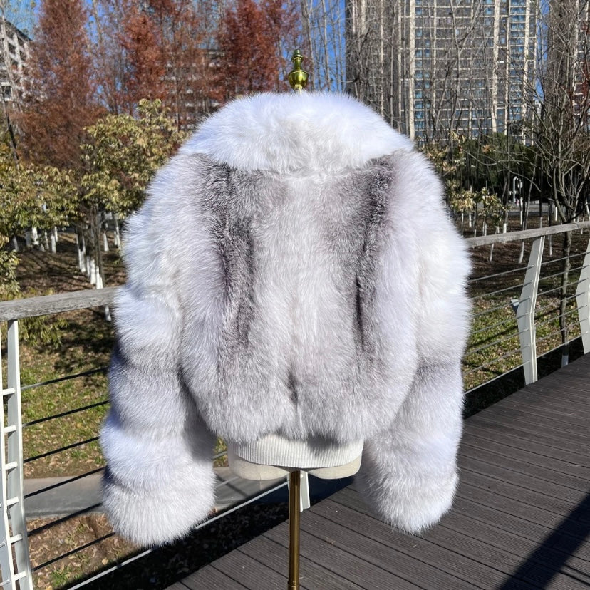 Introducing the Blue White Real Fluffy Coat. Made with high-quality materials, this coat is both stylish and cozy. With its unique design, you'll be sure to turn heads while staying warm. Get yours today and elevate your winter wardrobe!