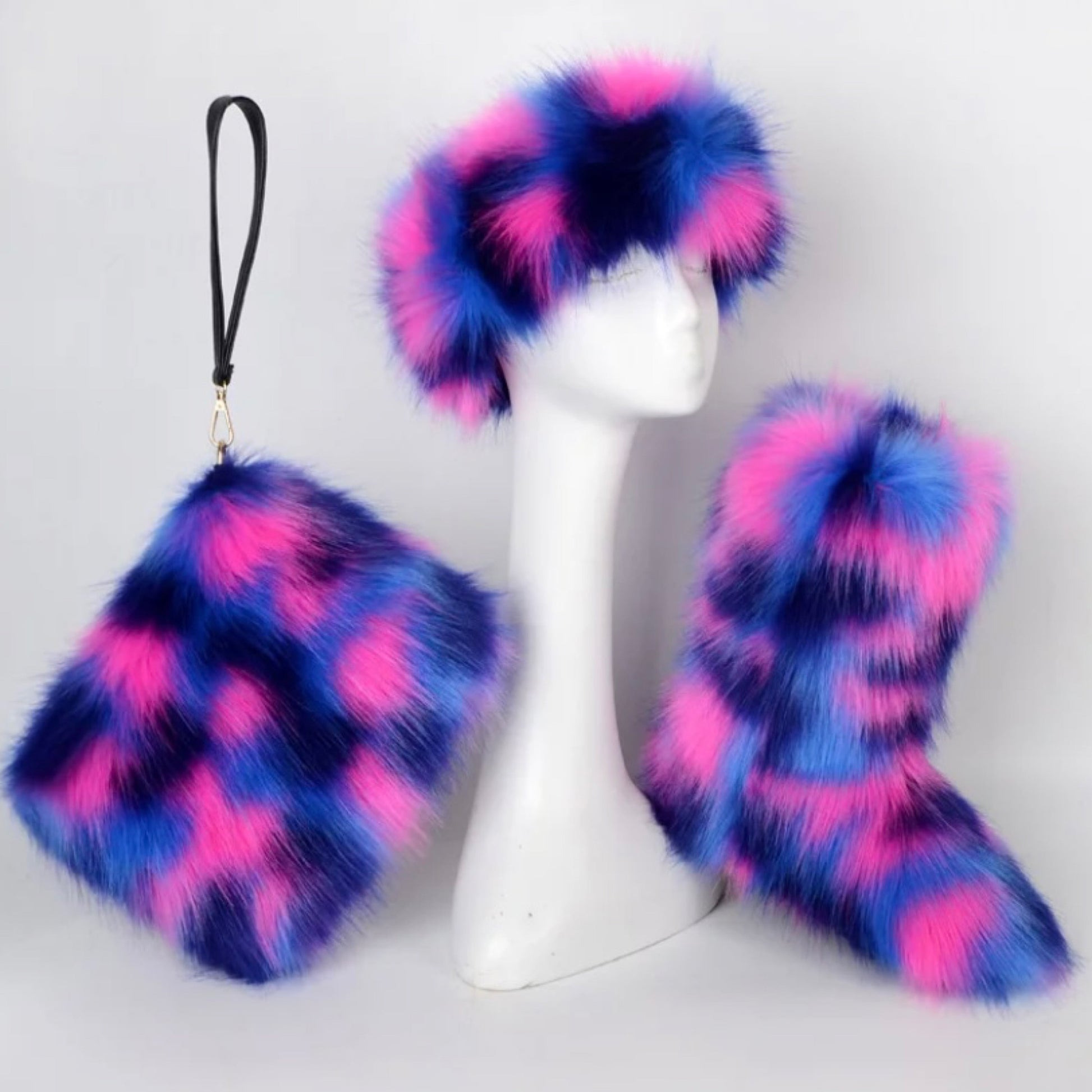 These faux fur boot sets come with a matching headband and purse, making them not only stylish but also versatile. The luxurious faux fur material adds a touch of elegance, while the set provides a complete look. Stay cozy and fashionable with these matching accessories.