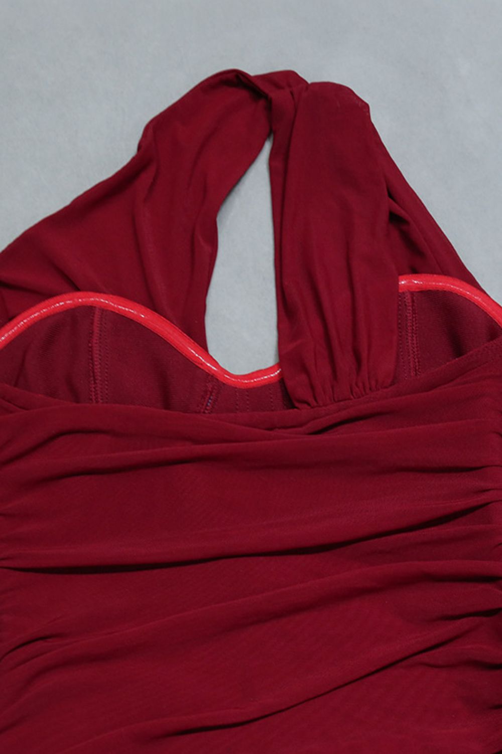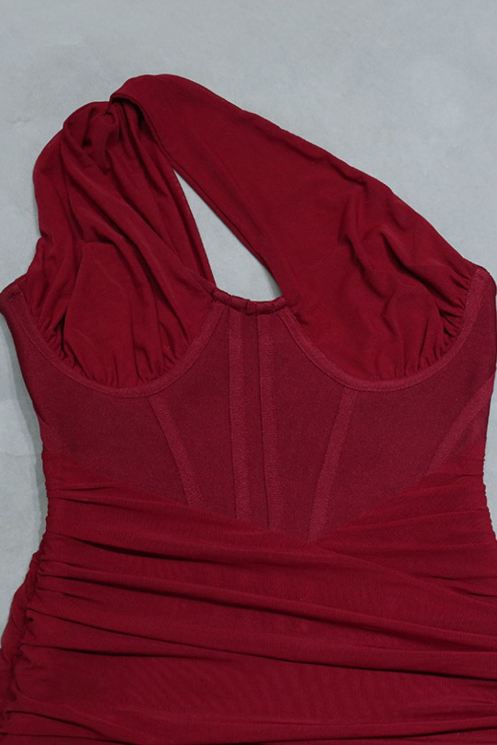 - Features: Seam detail, ruched, cutout